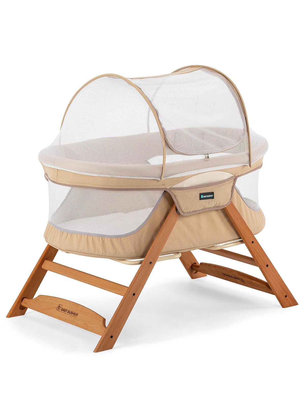 Baby Bushuo Angel Portable Folding Wooden Crib & Travel Bed